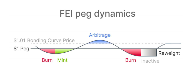 We asked the question earlier: why would someone want to lock up more assets to issue a lower value loan? It is indeed capital inefficient. Fei Protocol is an experimental project that explores a new mechanism that aims to mitigate the drawbacks of both overcollateralization and non-collateralization stablecoins.