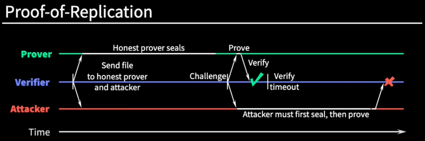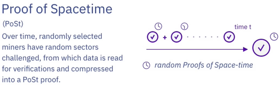 Proofs-of-Storage is the equivalent of Proof-of-Work on filecoin blockchain. The two Proofs-of-Storages on Filecoin are Proof of Replication (PoR) and Proof of Spacetime (PoSt). In order to earn the mining fee, the miners have to write proof to the filecoin blockchain to show that the file has been replicated to its unique physical storage (PoR). Since the miner can simply delete the data immediately after submitting the initial proof, miners are asked periodically to provide proof that they still hold the data (PoSt). For more details on Proofs-of-Storage, this is a great article.