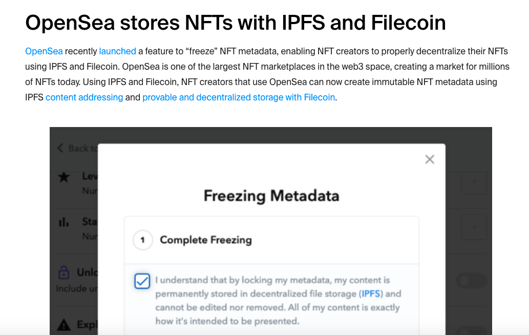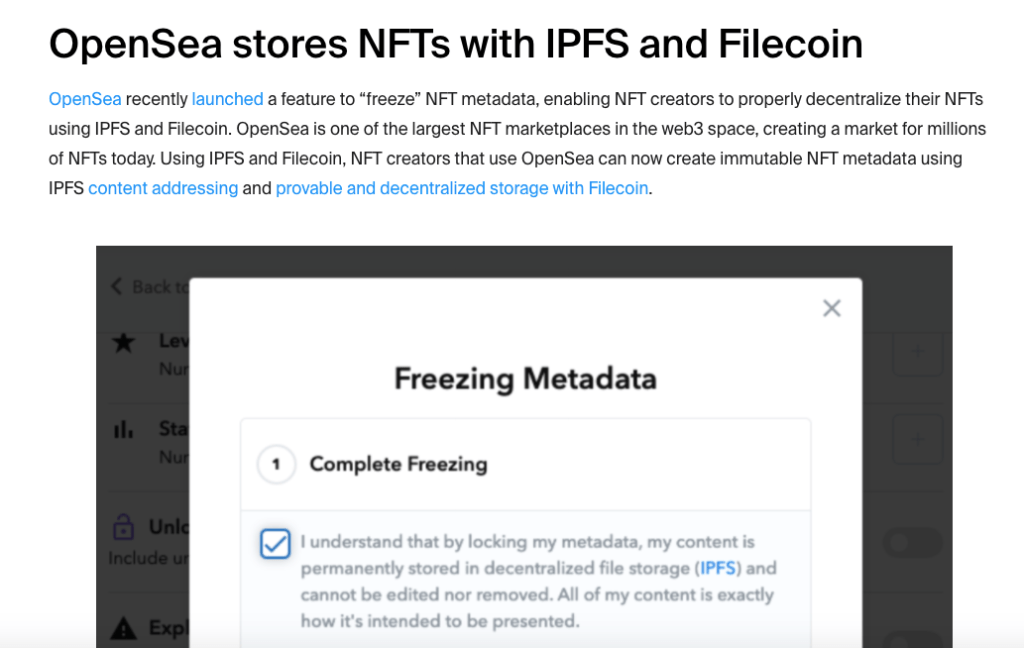In June 2021, Filecoin announced that Opensea has launched the “Freezing Metadata” feature using IPFS and Filecoin.