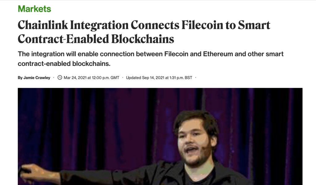 March this year, Filecoin announced integration with Chainlink to bring advanced storage solutions to web 3.0.