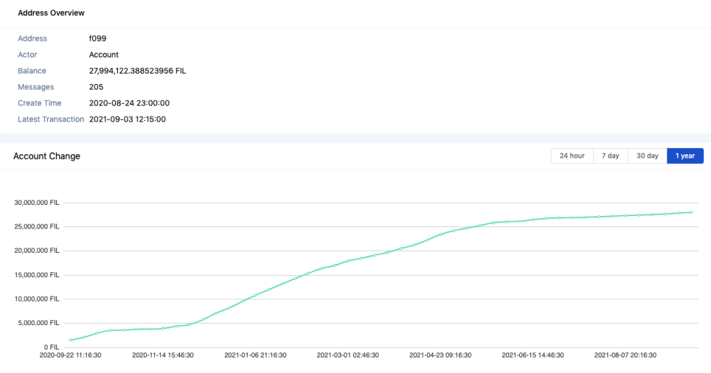 Many new investors who first come across filecoin are hesitated by its maximum supply of 2 billion. After all, the market cap is a function of supply and unit price. However, it is important to differentiate total supply and circulating supply. In Filecoin’s case, the circulating supply is a small portion of total supply. (more details at Understanding Filecoin Circulating Supply). Furthermore, the regular burn schedule makes sure that we will never get close to that number. Any rewards associated with unreliable storage space will be burned. If you want to check how many Filecoins have been burned so far, you can go to the burn address https://filfox.info/en/address/f099. As of 03 September 2021, around 28 million Filecoin have been burned with the network far from reaching its full utility.