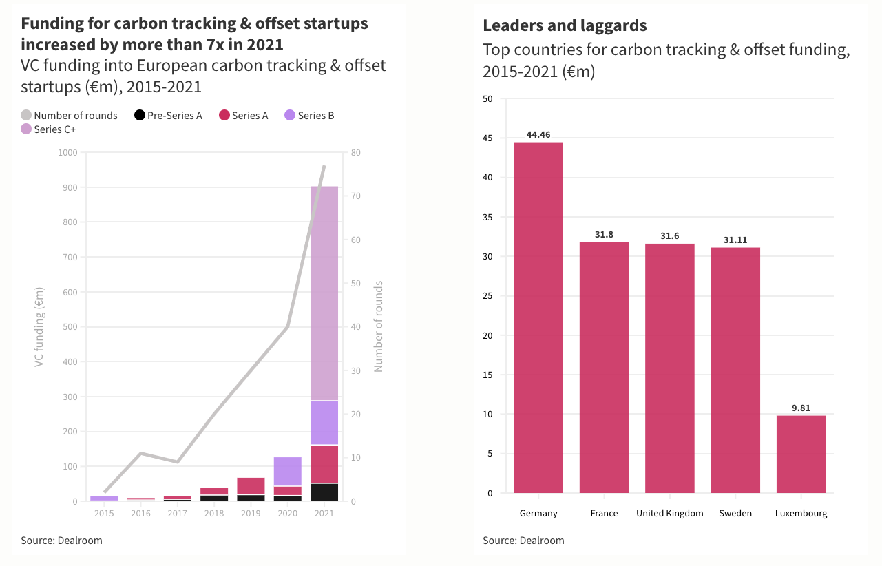 As ESG reporting becomes mandatory in more countries and regions, businesses large and small are working rapidly to fill the knowledge gap and to stay compliant. Accurate reporting requires proper carbon accounting of scope 3 emissions and more. To meet this latent demand, many startups have dedicated themselves to develop carbon accounting softwares. Many data points indicated that Carbon accounting is the subsector attracted the most fundings within the carbon technologies space. In April 2022, France-based Sweep raised $73 million to become the best funded Carbon Accounting platform in Europe. Its US peer Persefoni raised $114 million in total to continue to work on the cause.